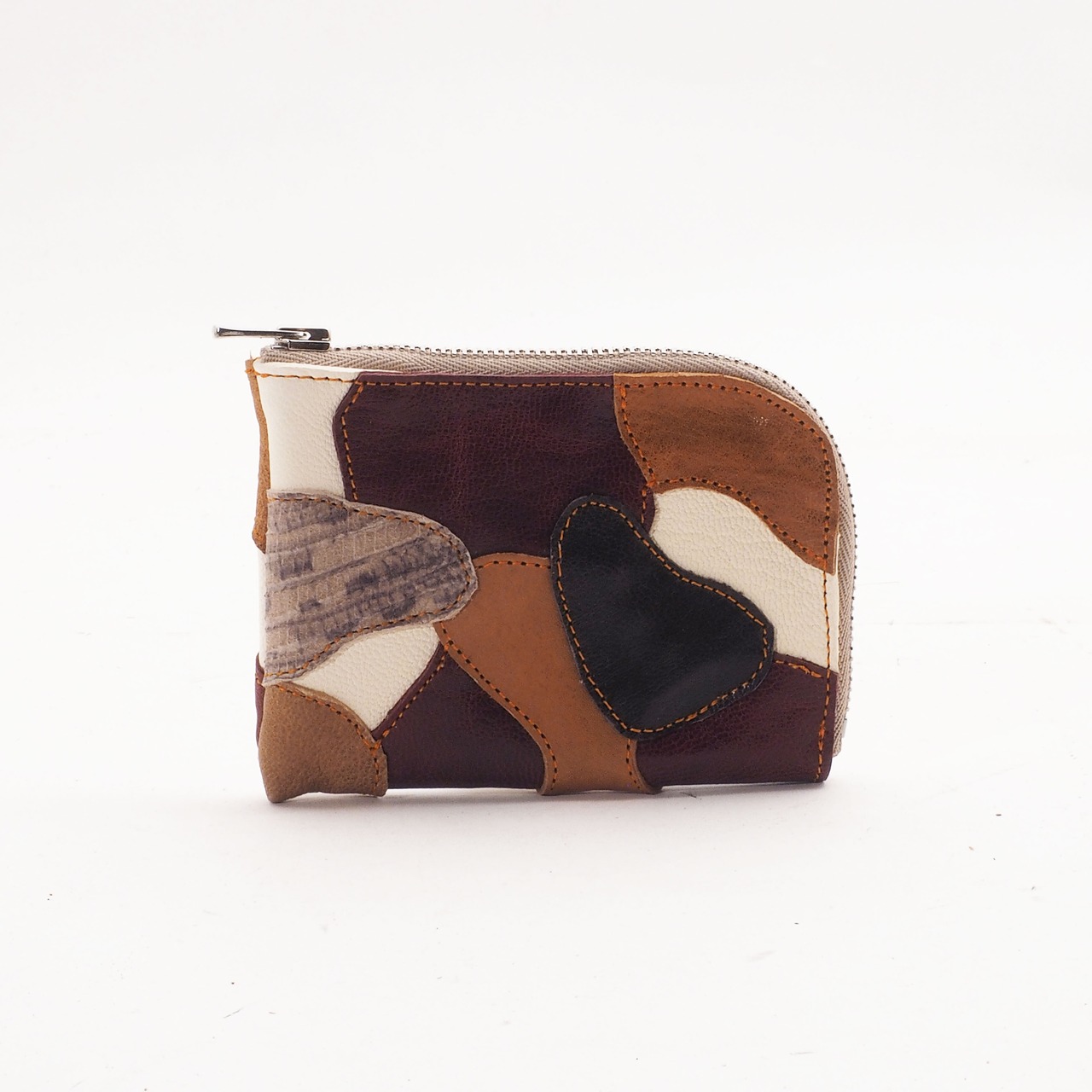 小さな革を縫い合わせた模様になっています。